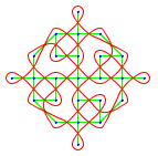 Well, I’m not an expert in this hoary art of South India. In fact, it is this envy of mine towards these unassuming household artists that prompted me to automate this sophisticated and artistic curve drawings. Kolam, is a regular Tamil word (maybe other South Indian languages too might be sharing this word with minor variations). I didn’t even try to translate this name into English, for this project, as Kolam is pretty unique to this part of the world. Of course, I’ve seen similar art forms with knots and curves in some Inca related pages in web. I guess the Arabs too have similar graphic art forms (which is evident in some great mosques that are in India). All the same, I guess, no where else in the world, is the Kolam like art form as alive and a day-to-day affair, as it is in India. In the North of India, another colorful variation of this practice is prevalent, in the name of Rangoli. But I feel Rangoli, and some other artistic variations of Tamil Nadu itself, are not as mathematically interesting as this particular version of Kolam (nonetheless they are all a great feast to discerning eyes).
