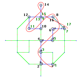 This brings us to the final piece of logic. This is nothing but the same bubble technique abstracted to its minimal essence. You can try tracing from the dot labeled as ‘1’ and proceed till ‘17’. Be careful while traversing the busy 9-13-15 point. This point of degree four will have four transits (three shown here). Typically a point of n-degree (n lines attached to it), will have n transits.