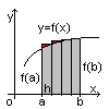 If you notice, the same trick that we applied to the above case of sphere holds good for all continuous functions. For the area under the curve case, assume that the x-axis is split into n equal sections, between x=a and a=b. So, each section (say h) is equal to (b-a)/n.